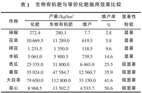 目前,生物有機(jī)肥在一些生態(tài)示范區(qū)、綠色和有機(jī)農(nóng)產(chǎn)品基地應(yīng)用取得了較好的效果, 這對生物有機(jī)肥今后的推廣應(yīng)用起到良好的示范作用。
